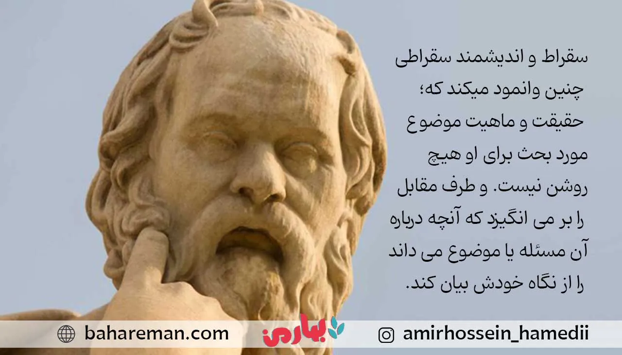 این نمونه کوتاه نشان میدهد چگونه سقراط با چند پرسش ساده باور اولیه را به چالش میکشد و شاگرد را به تفکر دوباره وامیدارد.